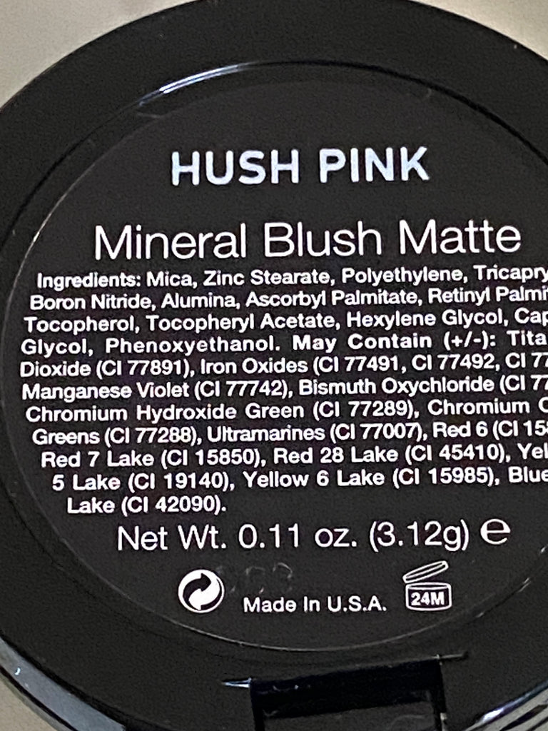 Hush Pink Matte powder is a mineral based blush that will give you a simply beautiful, healthy pink glow. It glides on easily. The color is densely pigmented so a little goes a long way. It looks great on all skin coloring and best of all it is good for your skin. Like all of my products, Hush Pink feels light on your skin. ~ Jill