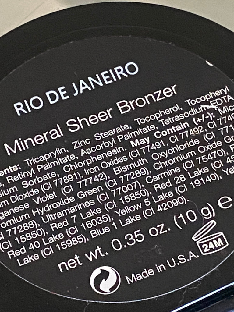 Rio D'Janeiro Mineral Sheer bronzer is a silky, mineral enriched bronzing powder. It gives your skin a natural radiance and a youthful glow with no streaking. It's micro-fine minerals deliver a sheer, healthy bronzed finish.