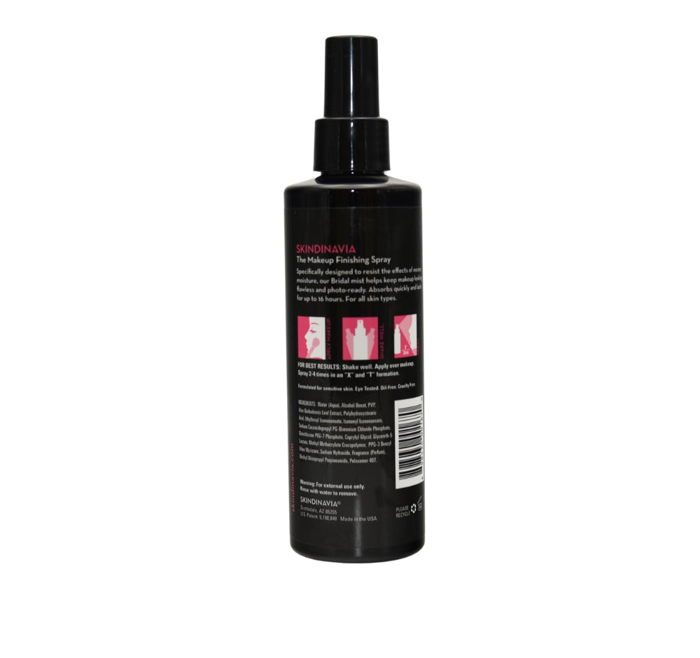 Skindinavia makes a terrific  Makeup Finishing Spray. Shake the bottle well and then Spray 2 - 4 times in an X and T formation on your face to keep your makeup looking flawless. Once you have applied your own makeup and taken the time to get it perfect to you, a couple of sprays from this will keep it fresh for up to sixteen hours!  It helps to prevent creasing or melting.